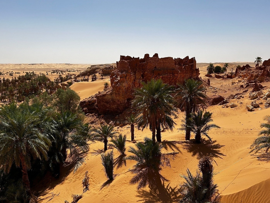 Timimoun is a magnificent oasis located in the southwest of Algeria, in the heart of the Sahara. It is famous for its golden dunes, lush palm groves, and red earthen houses that give it a unique charm. Nicknamed the “Pearl of the Desert,” Timimoun captivates visitors with the beauty of its landscapes, the richness of its culture, and the warm hospitality of its people.