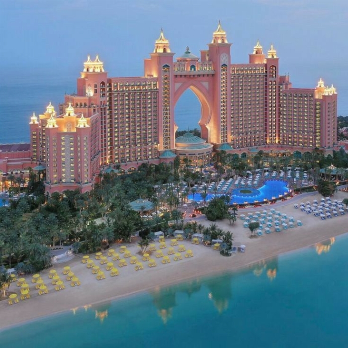 Atlantis The Palm is a luxury hotel and iconic resort located on Dubai’s famous artificial island, Palm Jumeirah. It is renowned for its stunning architecture, luxurious suites, gourmet restaurants, Aquaventure Waterpark, impressive aquariums, and a wide range of family and leisure activities.