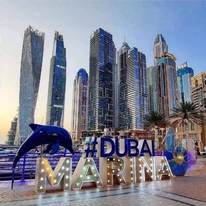 Dubai Marina is a vibrant district in Dubai, known for its modern skyscrapers, yachts, and waterfront restaurants. It's a popular spot for shopping, relaxation, and enjoying views of the marina.