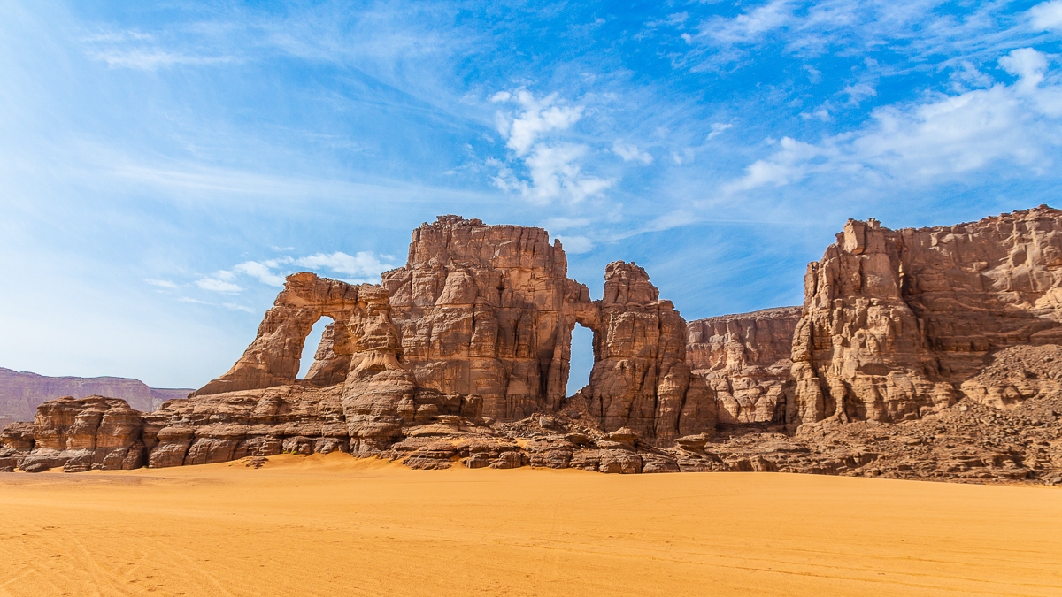 Djanet is a town in southeastern Algeria, located in the Sahara Desert, famous for its stunning landscapes, rock formations, and heritage, including the Tassili n'Ajjer site, a UNESCO World Heritage site. It’s an ideal starting point to explore the desert, discover oases, and experience the culture of the Tuareg people. A perfect destination for adventurers and nature enthusiasts.